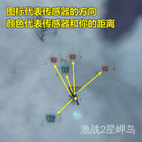 传感器技能使用传感器追踪技能,会在地面上显示标记。标记的位置代表传感器的方向,而不同的颜色代表不同的距离。红色代表很远,蓝色代表较近,绿色代表就在附近。传感器的位置是随机的,你也仅有 30 分钟的时间去回收传感器。 |