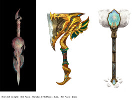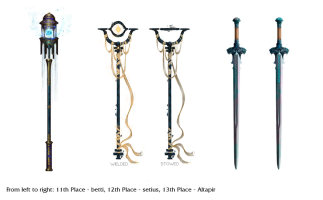 本次比赛获胜的三个作品分别是:火炬「巨像恩典」、巨剑「日蚀」、利剑「神裔利爪」。