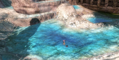 使用坐骑来到柱子顶部,沐浴在瀑布中完成收藏
