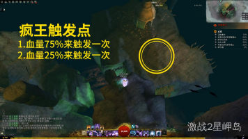 - 当疯王血量降至75%后,请